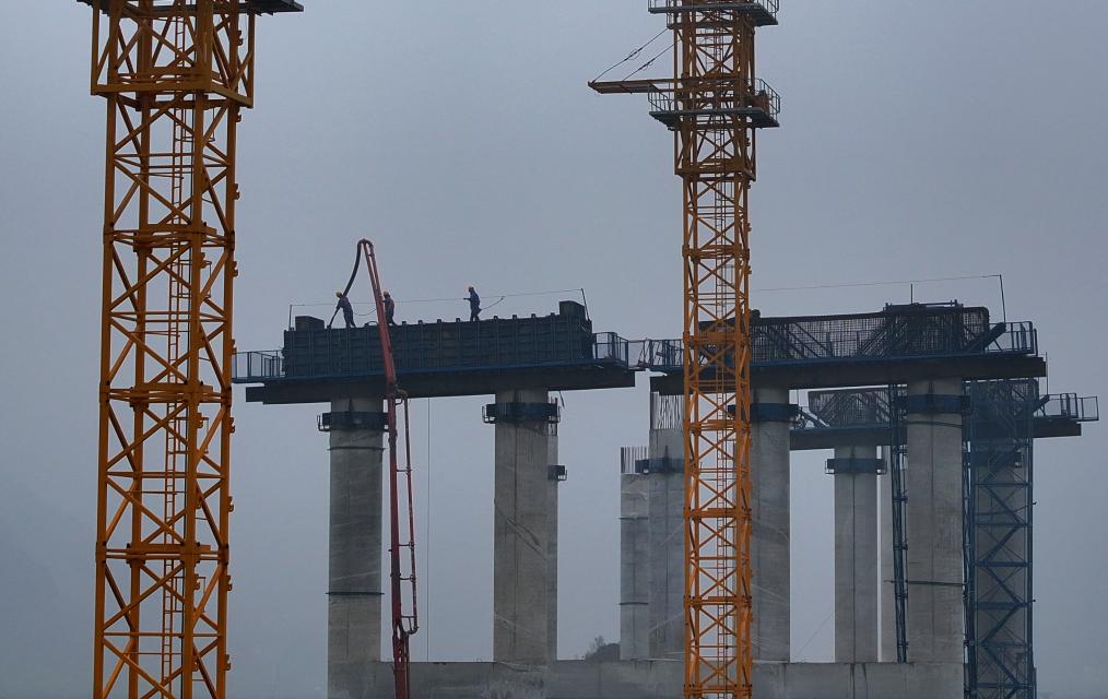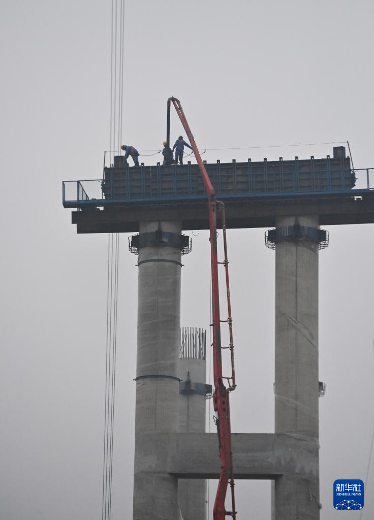 12月10日,中铁二十局工人在广西鱼宜高速公路建设工地作业。