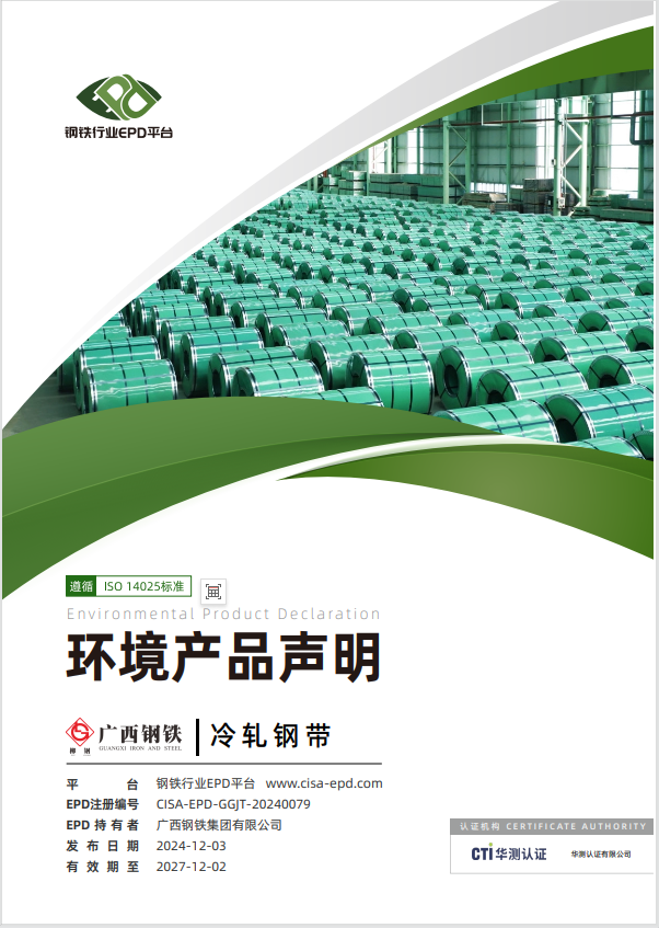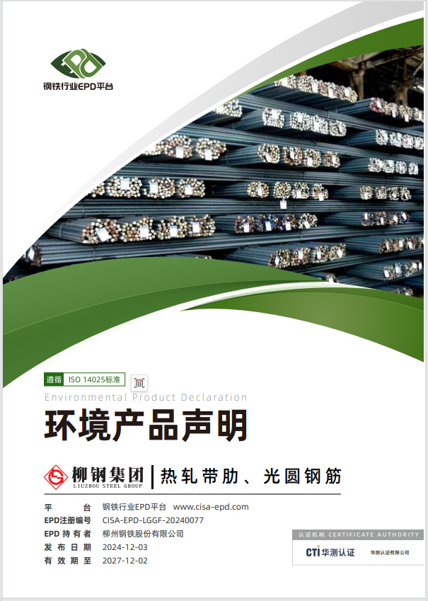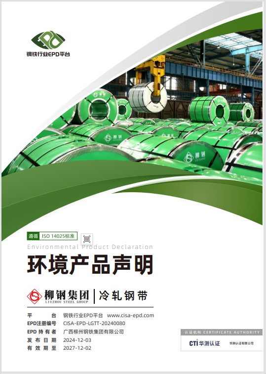 2024年12月,广西柳州钢铁集团有限公司(以下简称柳钢集团)首次在中国钢铁行业EPD平台成功发布柳钢集团冷轧钢带产品、柳钢股份热轧钢筋产品、广西钢铁冷轧钢带和热轧钢筋产品共计4份环境产品声明EPD报告,成为广西首家发布环境产品声明EPD报告的钢铁企业。