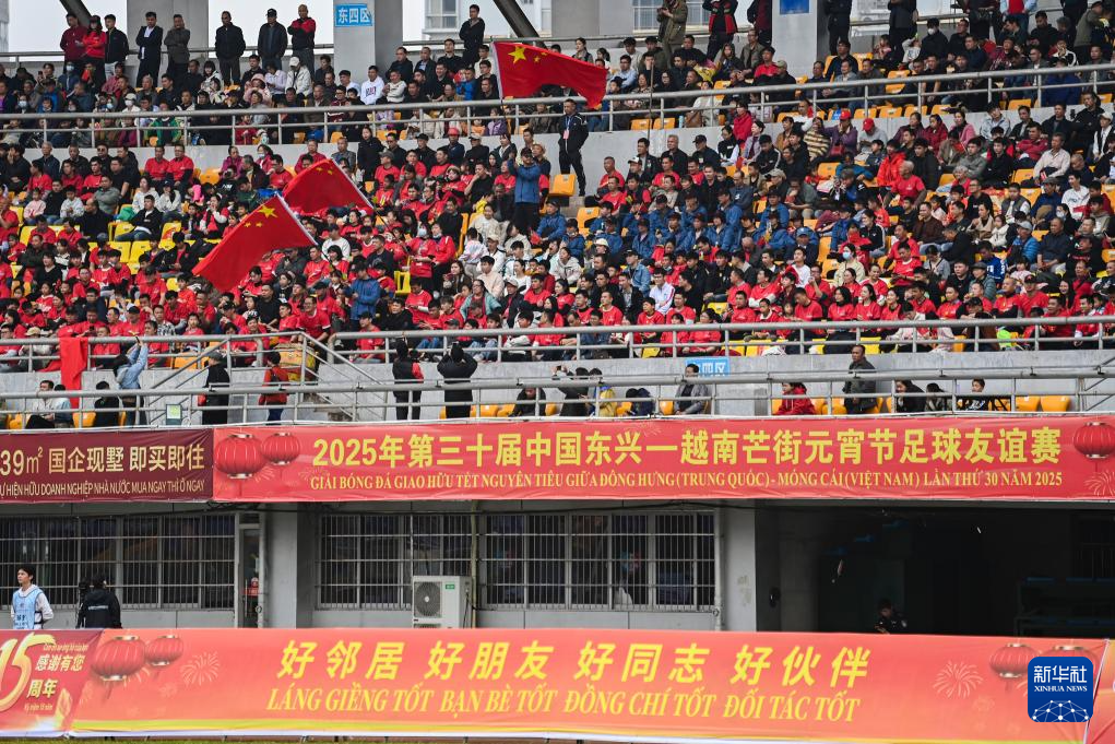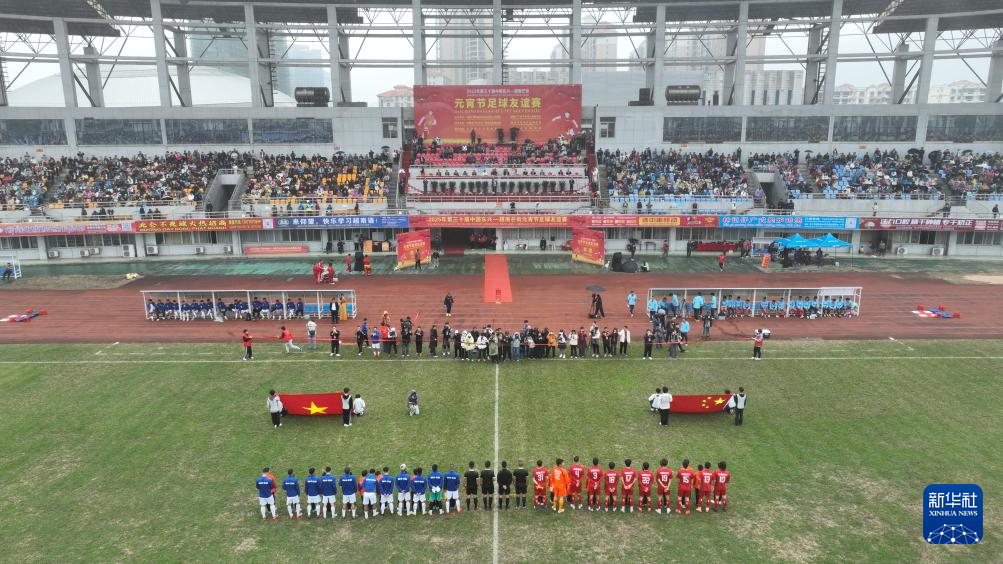 2月12日,第30届中国东兴—越南芒街元宵节足球友谊赛在广西东兴市举行。(东兴市融媒体中心供图)