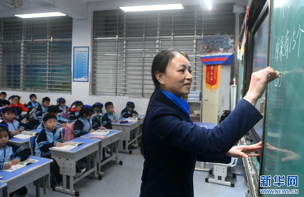 2月17日,广西南宁市滨湖路小学老师在给学生上课。