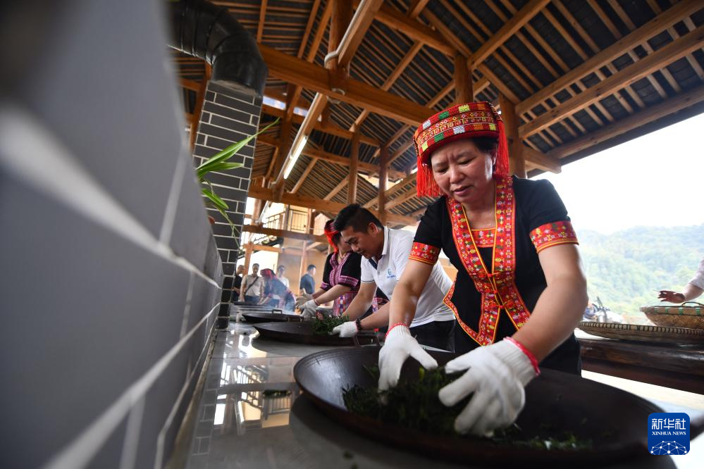 在广西梧州市苍梧县六堡镇山坪村,村党支部书记、村委会主任祝雪兰在制茶(2024年3月25日摄)。十多年来,作为六堡茶制作技艺自治区级代表性传承人,祝雪兰办起“茶园讲堂”,推广传统制茶技艺,带领村民成立多家六堡茶专业合作社,并采用“党支部+合作社+农户”的模式,种茶制茶售茶,带动周边各族群众共同发展六堡茶种植产业,助力群众增收致富。