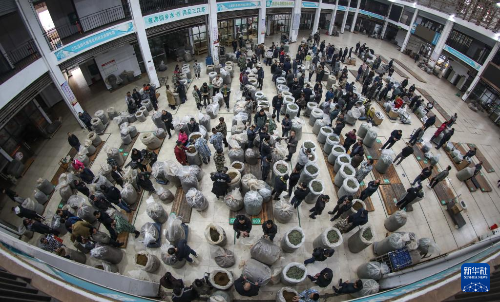 这是三江侗族自治县的茶叶交易市场(3月22日摄)。