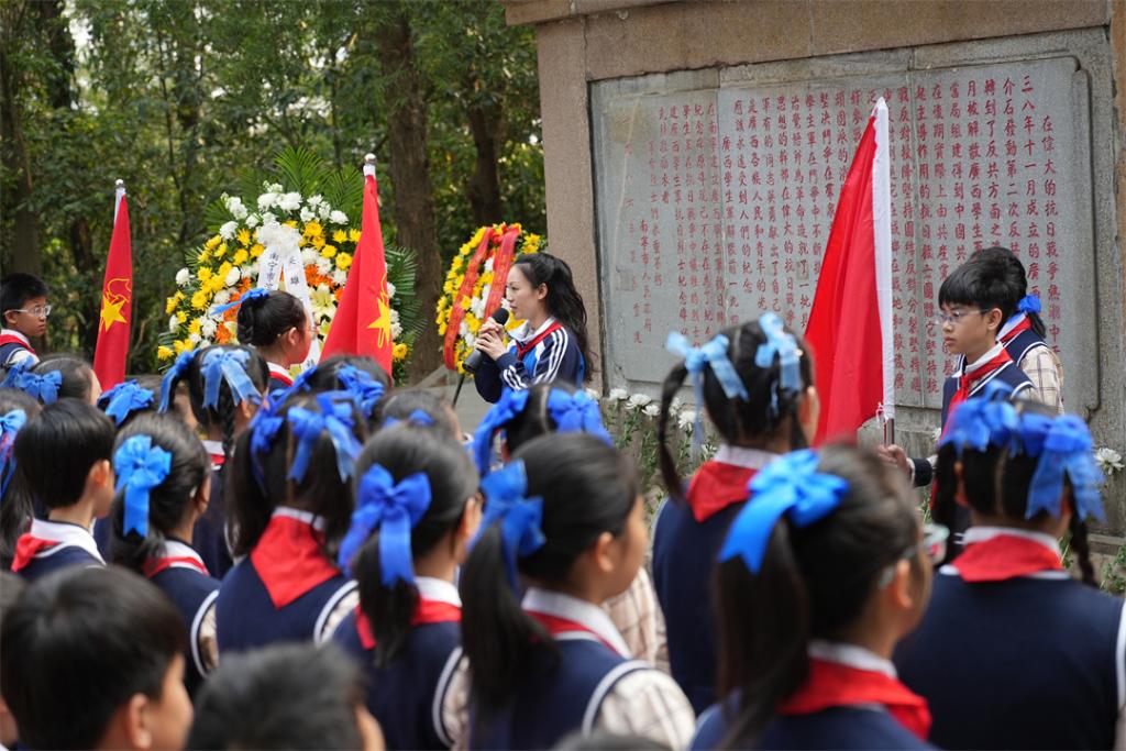活动尾声,梁秋梦老师动情总结:“今天的和平是先烈用生命换来的,而你们的笔尖、你们的成长,就是对英灵最好的告慰!希望队员们将今天的感动化作行动,用勤奋学习告慰先烈英灵。”