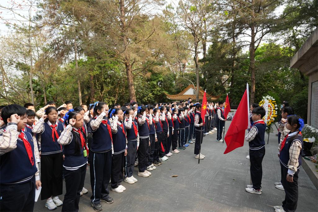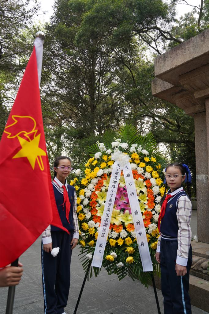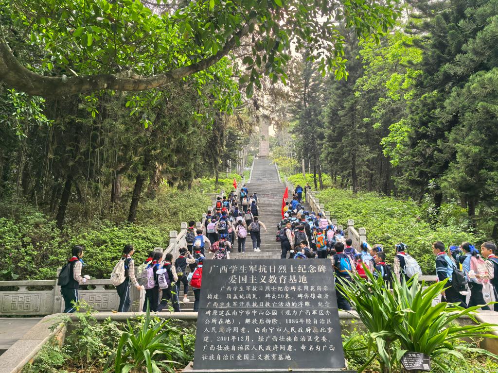 春风寄哀思,青松伴忠魂。4月3日上午,南宁市滨湖路小学教育集团滨湖校区开展清明节祭扫英烈主题活动,五(1)、五(2)中队的少先队员们,在老师的带领下,身着整齐的校服,戴着鲜艳的红领巾,前往青秀山广西学生军抗日烈士纪念碑,以一场庄严肃穆的祭扫活动,缅怀革命先烈,厚植爱国情怀。