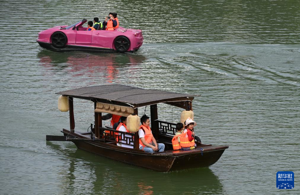 4月13日,广西南宁市天气晴好,不少市民利用周末来到民歌湖上泛舟游玩,享受明媚春光。
