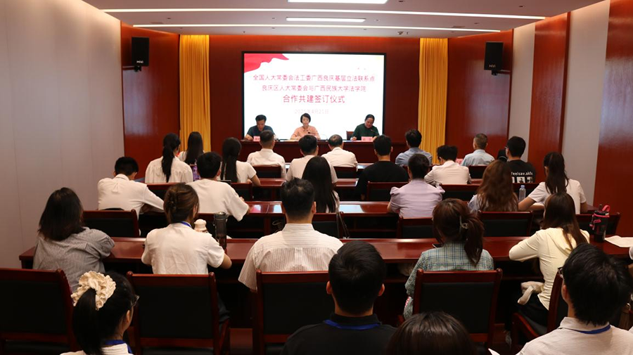 近日,南宁市良庆区人大常委会与广西民族大学法学院在广西良庆基层立法联系点活动阵地签订合作协议,双方将在民族团结、服务自贸区立法、服务涉外立法等领域深化协作。签约仪式后,广西民族大学法学院同步启动第二届“相思湖”模拟立法大赛。