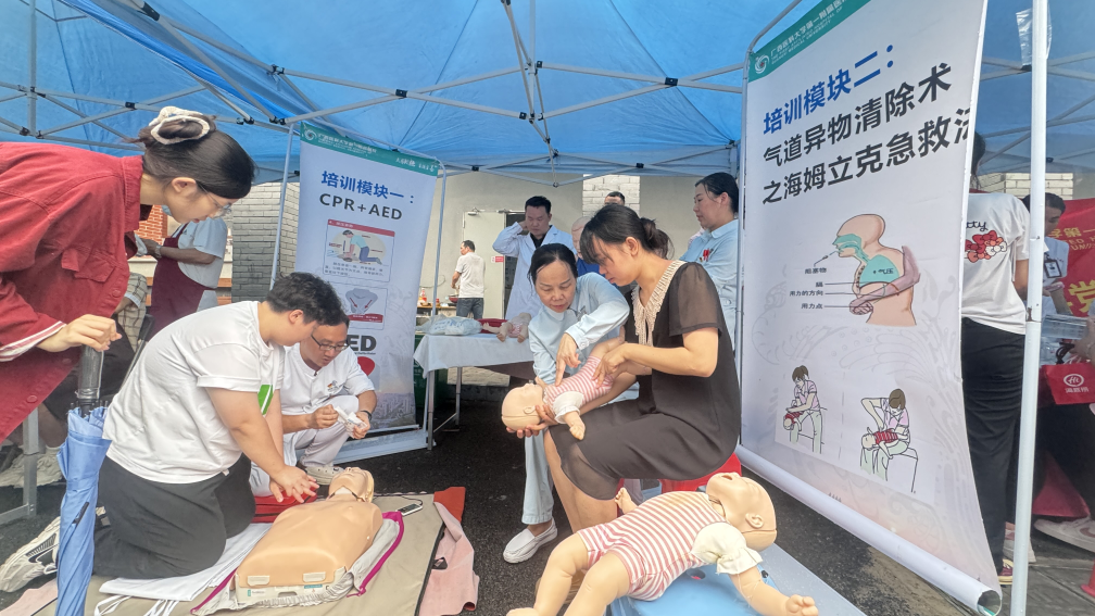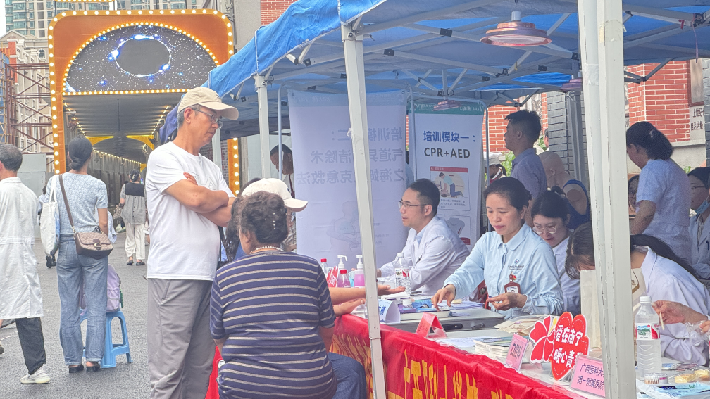 活动现场,便民服务区的健康义诊摊位前市民络绎不绝。广西医科大学第一附属医院急诊科、皮肤科、检验科和口腔科等科室的医护人员们正在给市民提供急救知识科普、现场面诊、健康检查等服务。