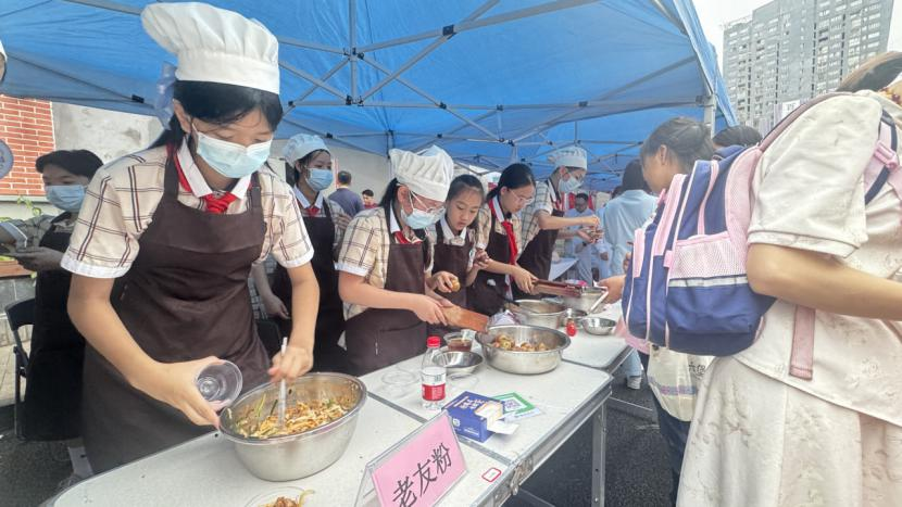 “现场的老友粉、酸嘢、槐花粉等特色美食都是由学生们制作的,本次义卖所得收益将全部捐赠给教育基金,是一次很有意义的活动。”南宁市中山路小学大队辅导员张宝方说。