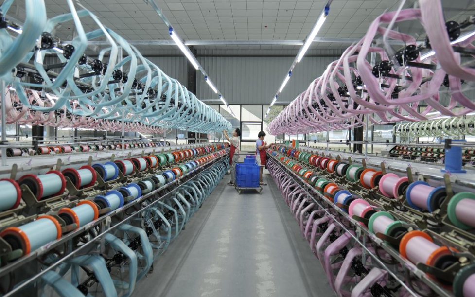 在忻城县茧丝绸产业园一期项目生产车间,只见机械设备高速运转、工人们正忙着缫丝、络丝、并丝、倍捻、倒筒……
