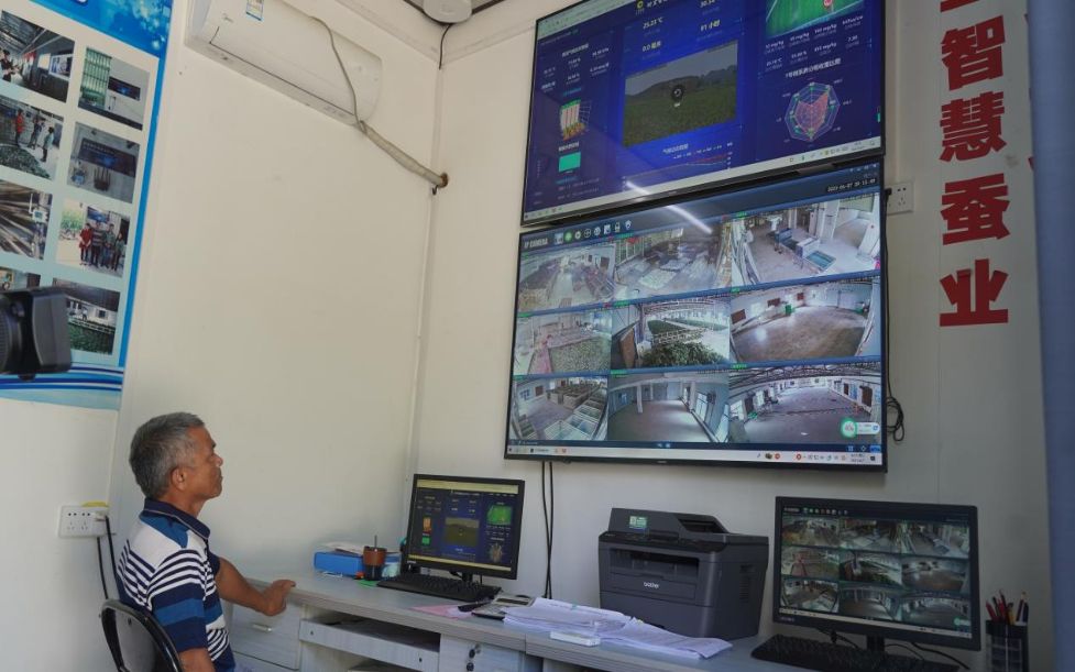 蚕农通过智慧云平台实时监测桑园和蚕房。忻城县融媒体中心 供图
