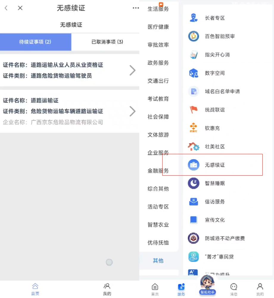 智桂通App“无感续证”服务页面。(受访单位供图)