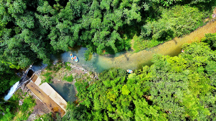 入夏以来,广西桂平市紫荆镇天王谷漂流生态旅游度假区迎来了旅游旺季,各地游客纷至沓来,在清凉山泉中体验生态漂流,享受炎炎夏日的片刻清凉。