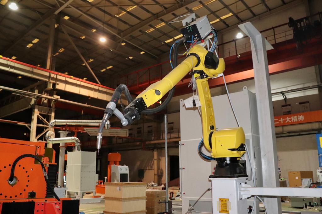 “以前的机器人没有AI技术时,硬着头皮按指令方向走,撞了也不停。”广西智拓科技有限公司总经理李江崟说,现在的机器人能识别装载机轮胎等位置偏差——哪怕移了十几毫米甚至半米,也能通过拍照瞬间定位,精准对接孔位,自动完成螺栓安装等操作。
