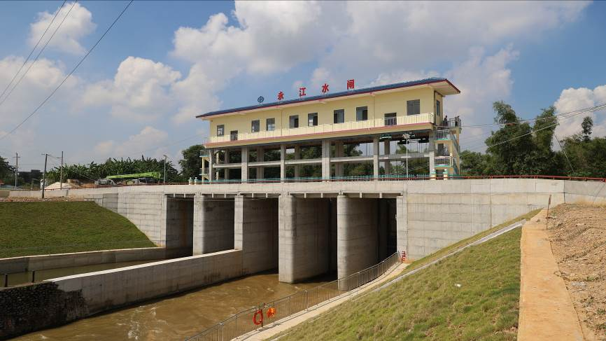 作为以防洪、排涝为主,兼顾灌溉与乡镇交通功能于一体的综合性水利工程,永江水闸控制集雨面积达655.11平方千米(其中桂平境内485平方千米),河道干流长82.79千米,平均坡降0.56%;通过科学布局闸室、消能防冲设施、两岸连接建筑物等核心结构,构建起一道坚实可靠的水利安全防线,保护范围覆盖蒙圩、西山、石龙、白沙、厚禄等乡镇。