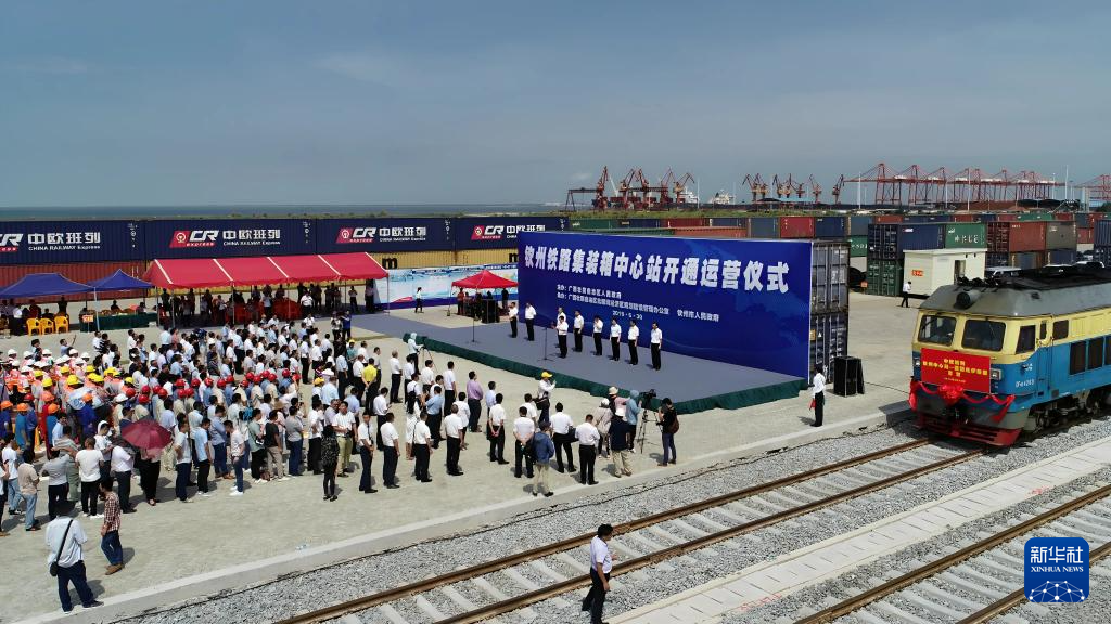 中欧班列从广西钦州港开出,驶向德国杜伊斯堡(2019年6月30日摄)。