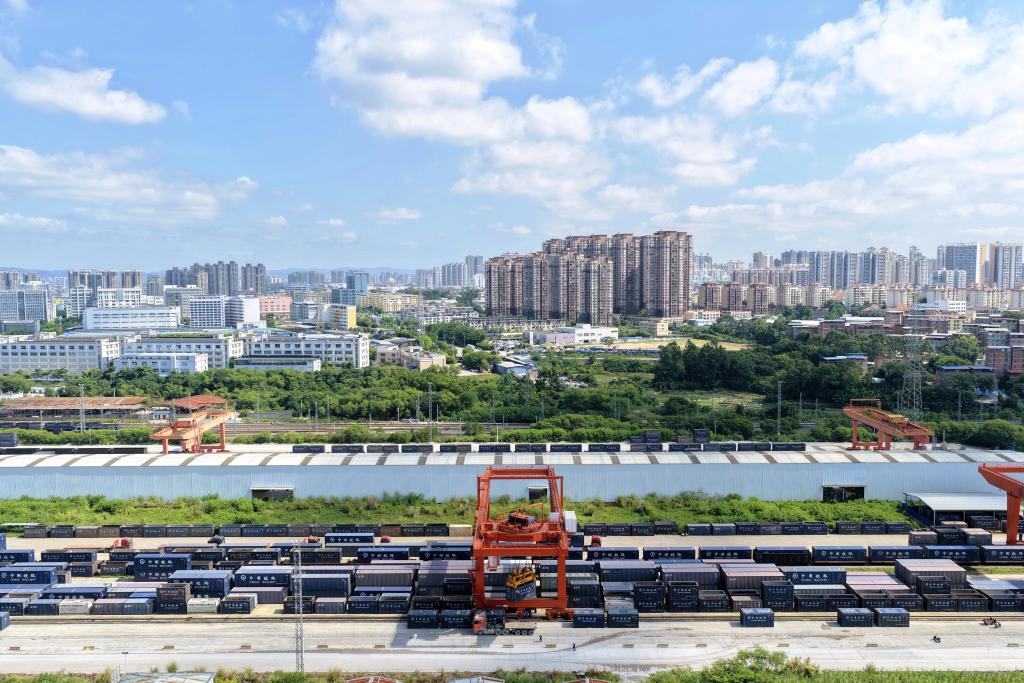 9月23日拍摄的南宁国际铁路港(无人机照片)。