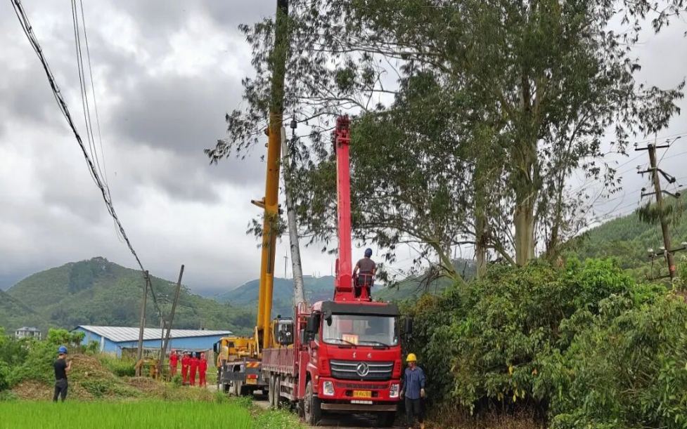 博白供电局亚山供电所配电线路维护班班长王继唐说:“台风期间,部分乡镇的线路出现故障,我们供电所在确保安全的情况下,争分夺秒排查故障,全力开展抢修工作。”