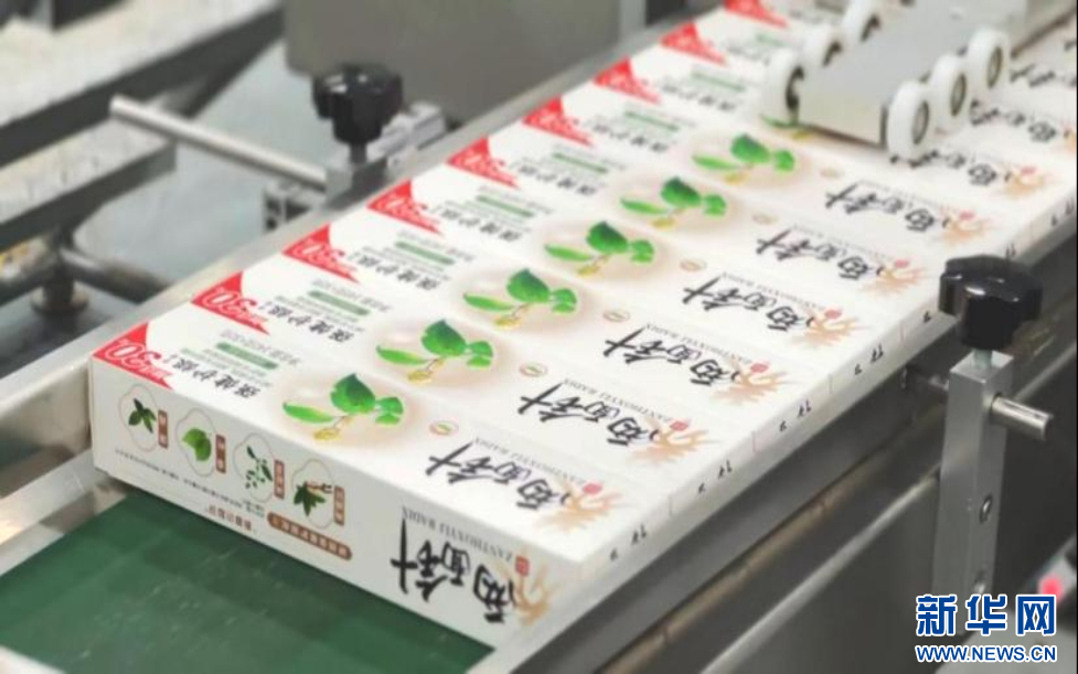 正在生产线上的两面针牙膏。两面针公司供图