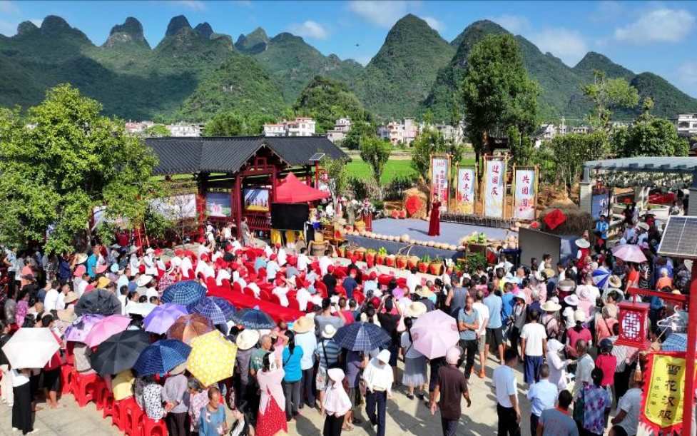9月23日,以“庆丰收、迎国庆、共团圆”为主题的广西平乐张家镇2025年中国农民丰收节在丰收广场开幕。本次活动由张家镇14个村(社区)联合主办,通过特色展销、文化展演、农事体验等多元形式,全面展现“一河两游四区联动”发展新成效。