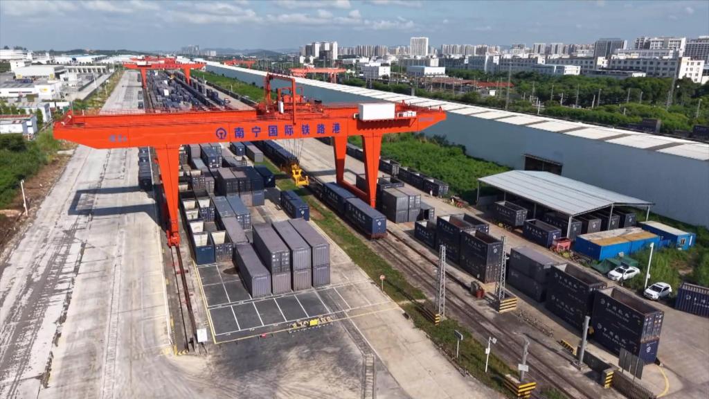 南宁国际铁路港位于广西南宁市西南部,紧邻南宁南铁路编组站,是国家《西部陆海新通道总体规划》重点培育项目。南宁国际铁路港开行的特色班列有中越班列、中欧(亚)班列、“两港”班列、城际快捷货运班列等。