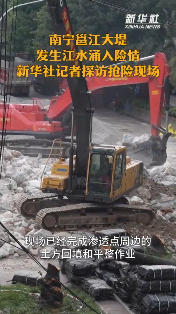 据了解,截至9日8时,广西南宁邕江大堤内堤塌陷部分已完成初步封堵,目前正对外堤豁口进行混凝土浇筑工作。