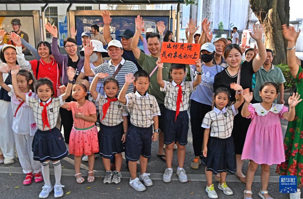 10月12日,南宁市民夹道欢送救援人员以示感谢。
