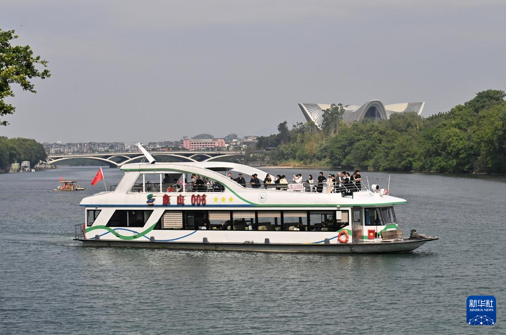 10月25日,游客乘坐游船在广西桂林市漓江游览观光。