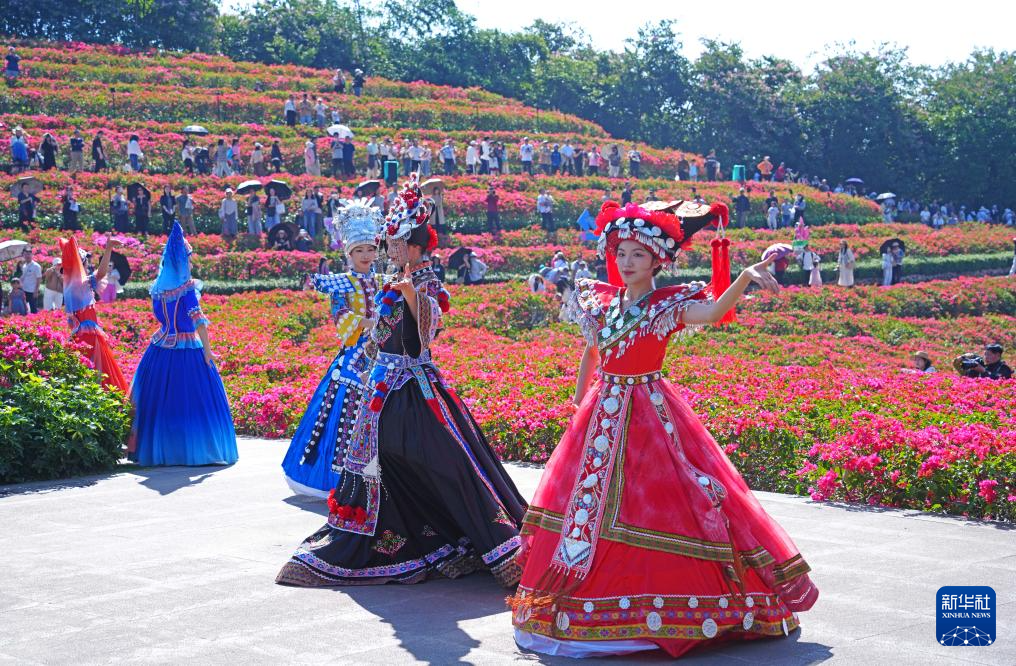 11月15日,演员在广西南宁市青秀山风景区三角梅花园演出。