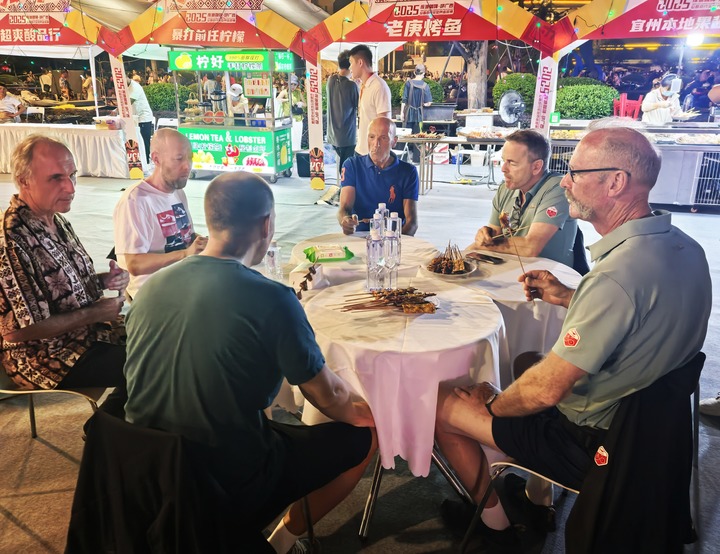 2025环广西公路自行车世界巡回赛期间,外宾在河池宜州品尝果酱烧烤。新华社记者 王楚然 摄