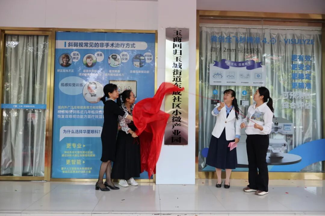 近日,“玉商回归玉城街道东成社区小微产业园”揭牌仪式在玉林华厦眼科医院内举行。玉城街道及东成社区相关干部、回归玉商企业代表、玉工代表与社区居民代表等齐聚现场,参与此次揭牌活动。