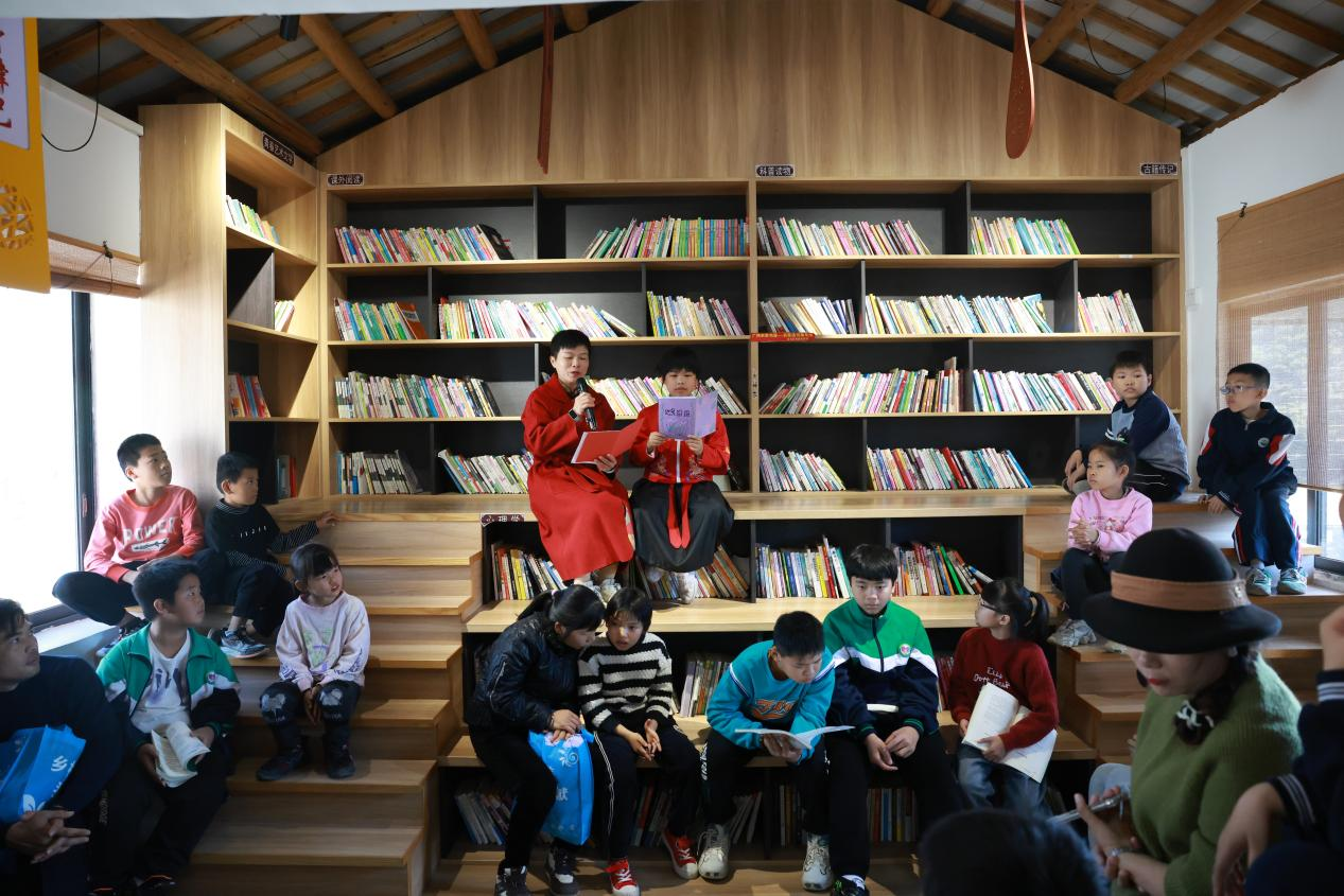 家长与孩子正在诵读廉洁经典篇目。张桐千 摄