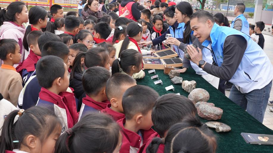 科普队伍由广西自然资源博物馆、广西自然资源宣传中心、广西机电工业学校、广西地图院、南宁市自然资源信息集团、广西地质学会、百色市自然资源局、那坡县自然资源局等单位组成,先后走进那坡县第二小学、百南乡规迪村弄卜小学、平孟镇北斗村完小和那坡县实验小学,通过“室内趣味课堂+室外互动展区”双线并行的创新形式,让自然资源知识变得可触、可感、可亲。